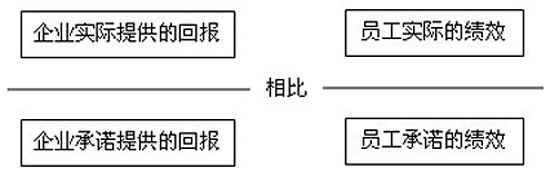 如果回報(bào)和員工自身期望不一致時(shí),知識(shí)員工將有不平衡的心理感知,但它不一定會(huì)引發(fā)強(qiáng)烈的發(fā)應(yīng),知識(shí)員工會(huì)尋求對(duì)感知到的期望和報(bào)酬不一致的情況進(jìn)行解釋,一般會(huì)對(duì)契約雙方履行責(zé)任的程度進(jìn)行比較,比較公式如圖2所示。
