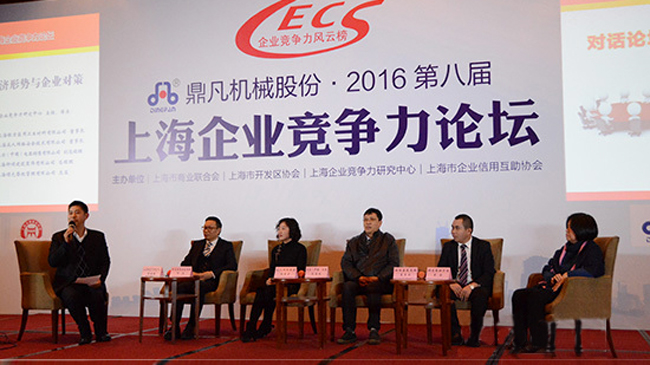 1月26日,2016第八屆上海企業(yè)競爭力論壇在上海舉行,本次會議由上海市商業(yè)聯(lián)合會、上海市開發(fā)區(qū)協(xié)會、上海企業(yè)競爭力研究中心、上海市企業(yè)信用互助協(xié)會聯(lián)合主辦,由鼎凡機(jī)械股份獨(dú)家冠名。我司董事長黃文平博士出席本次論壇。