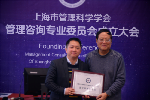 學(xué)會理事長王方華教授為副主任委員張偉華先生(百川會所總經(jīng)理)授牌