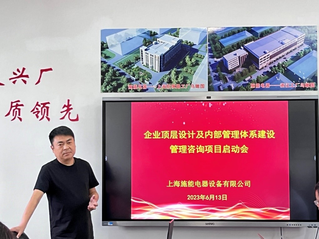 2023年6月13日上午,上海施能電器設(shè)備有限公司四樓會議室濟(jì)濟(jì)一堂,經(jīng)過前期雙方多次充分的溝通,由碩智咨詢主導(dǎo)的公司“企業(yè)頂層設(shè)計及內(nèi)部管理體系建設(shè)”管理咨詢項目正式啟動。