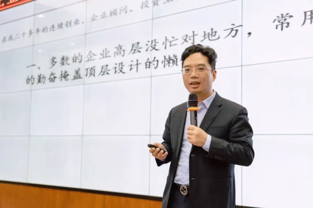 講座伊始,黃文平博士回顧了自己二十多年的創(chuàng)投生涯,指出當(dāng)前國內(nèi)企業(yè)界普遍存在“企業(yè)高層缺乏頂層設(shè)計(jì)”“中層管理者無法與企業(yè)高管對(duì)齊顆粒度”兩個(gè)重大問題,提出與企業(yè)頂層設(shè)計(jì)有關(guān)的“what、why、how”連環(huán)三問,讓前來參加講座學(xué)習(xí)的師生產(chǎn)生了較大的興趣并引發(fā)了大家關(guān)于這個(gè)主題深度的思考。