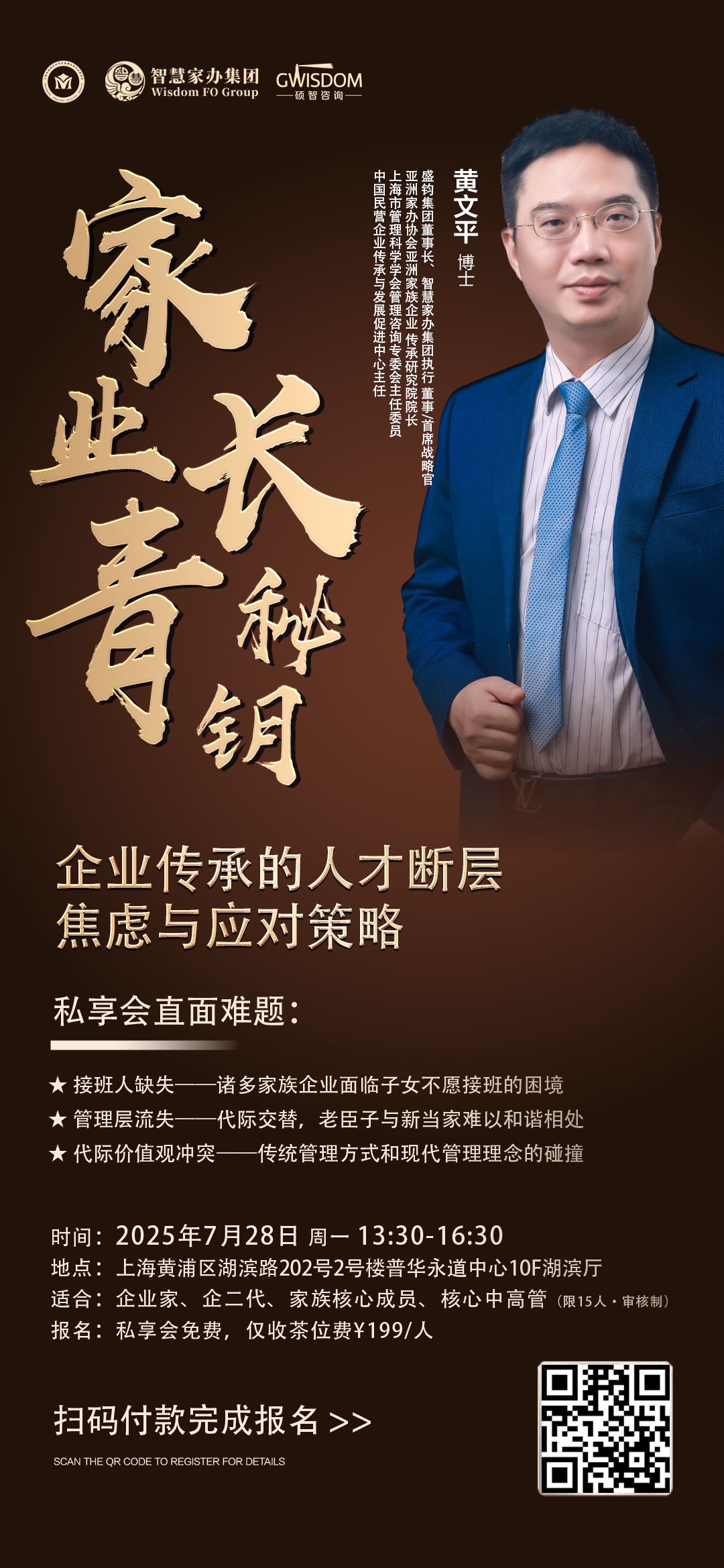 這不僅是一場私享會,更是一次改寫企業(yè)命運的關鍵契機!席位有限,立即掃碼了解私享會詳情,搶占寶貴名額,開啟企業(yè)傳承的破局之旅,不再盲目獨行!