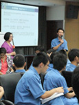 本月中旬,我司為上海電氣集團(tuán)下屬企業(yè)進(jìn)行了一次為期兩天的新進(jìn)大學(xué)生入職培訓(xùn)。此次新進(jìn)大學(xué)生96人次,因要接受集團(tuán)、公司內(nèi)部、外部培訓(xùn)公司的系列化培訓(xùn),因此無法按照常規(guī)40人的人數(shù)限制進(jìn)行授課,而是一次性集中授課。這么多的人數(shù)對(duì)于課程的效果呈現(xiàn)是一個(gè)挑戰(zhàn),但是由于前期準(zhǔn)備充分,兩位講師——鐘老師和牛老師以專業(yè)且有實(shí)效的培訓(xùn)課程演繹,為大家呈現(xiàn)了一次精彩的培訓(xùn)視覺盛宴。